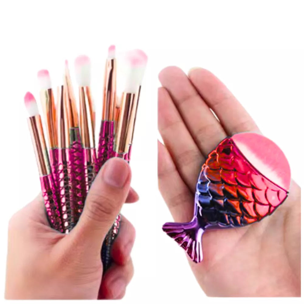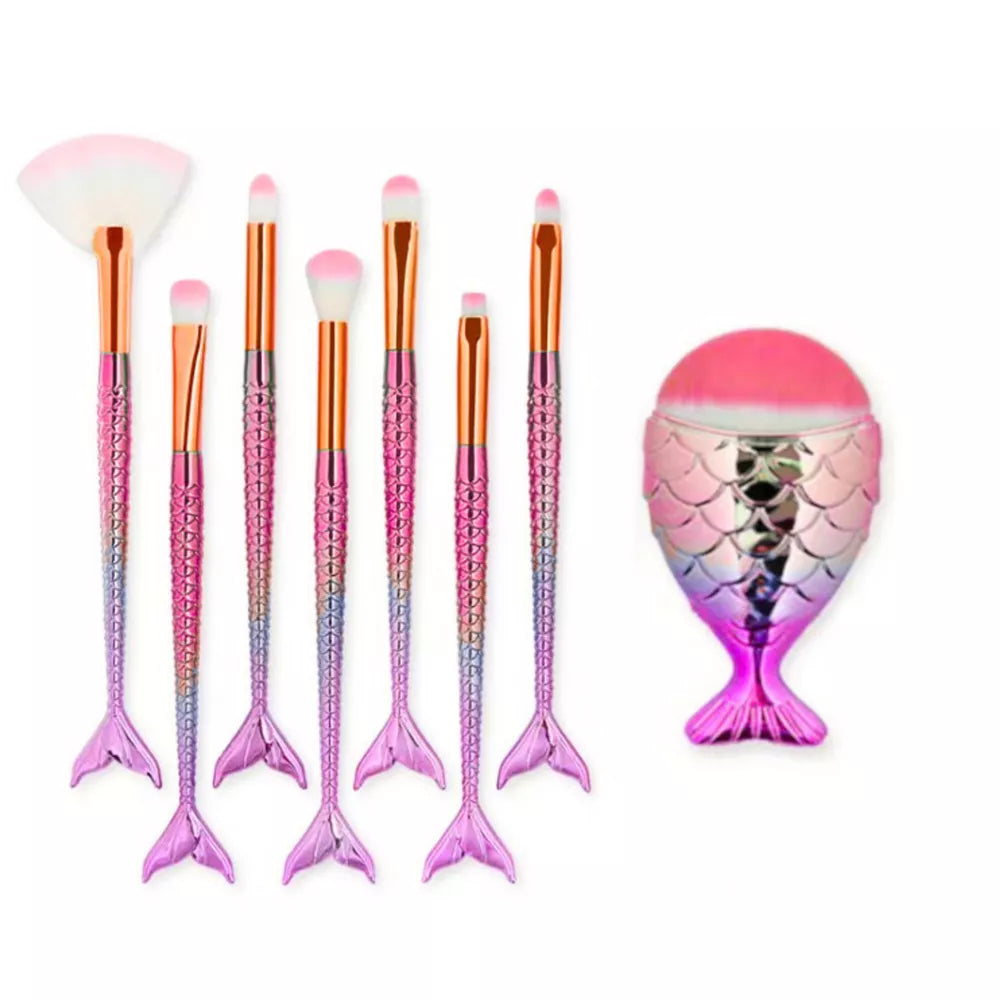Undinėlės uodegos makiažo šepetėlių rinkinys violetinė-rožinė, 8 vnt.