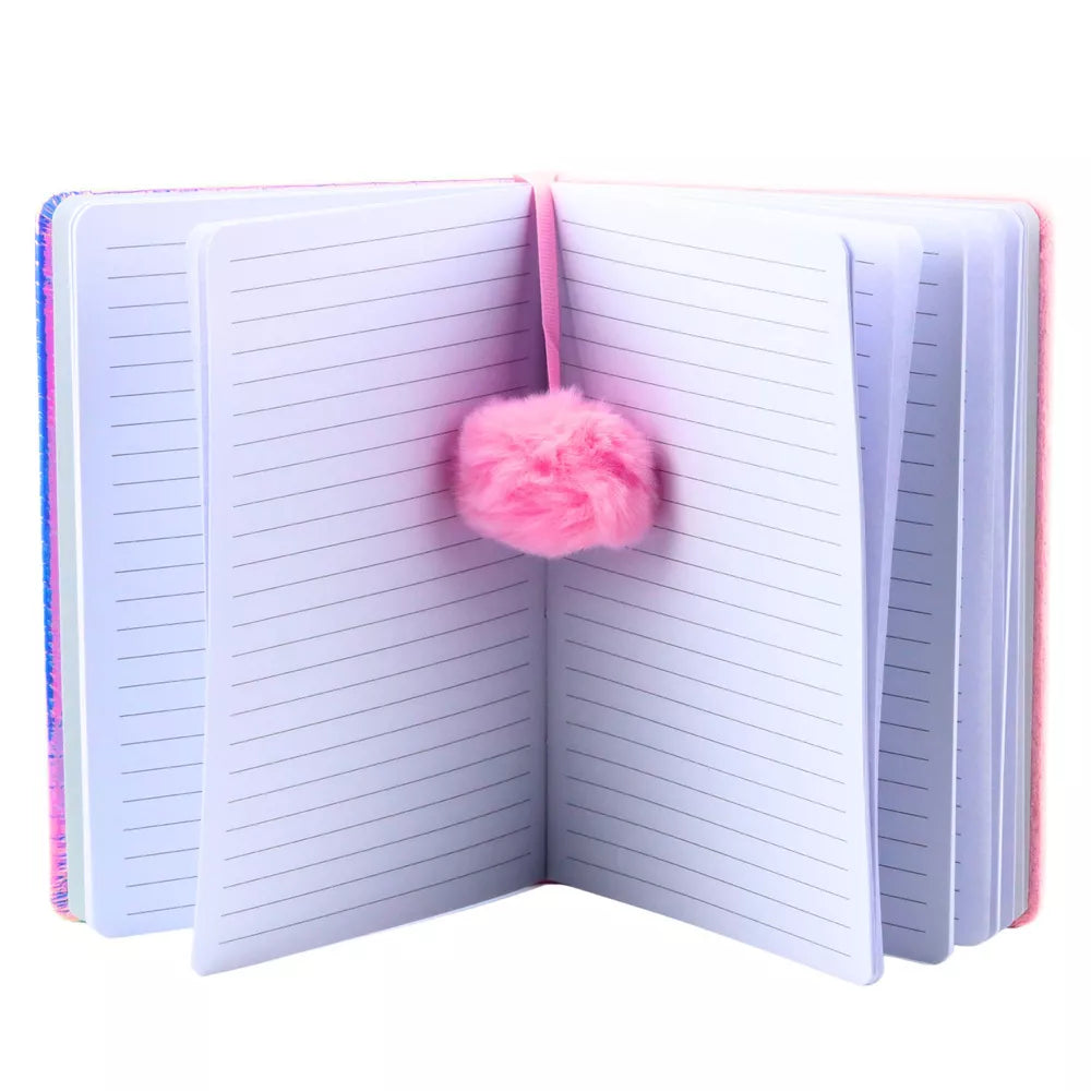 Funkcionalus skirtukas su rožiniu pūkuotuku atlieka ir praktinę, ir dekoratyvinę funkciją – jis leidžia greitai pasiekti norimą puslapį ir suteikia žavingą akcentą. Sąsiuvinio nugara padengta minkšta, pliušine medžiaga, kuri maloni liesti ir suteikia jam unikalų žavesį.