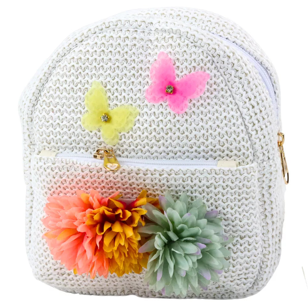 Vaikiška kuprinė, siuvinėta drugeliais ir gėlėmis, 2,5 l, 20 cm