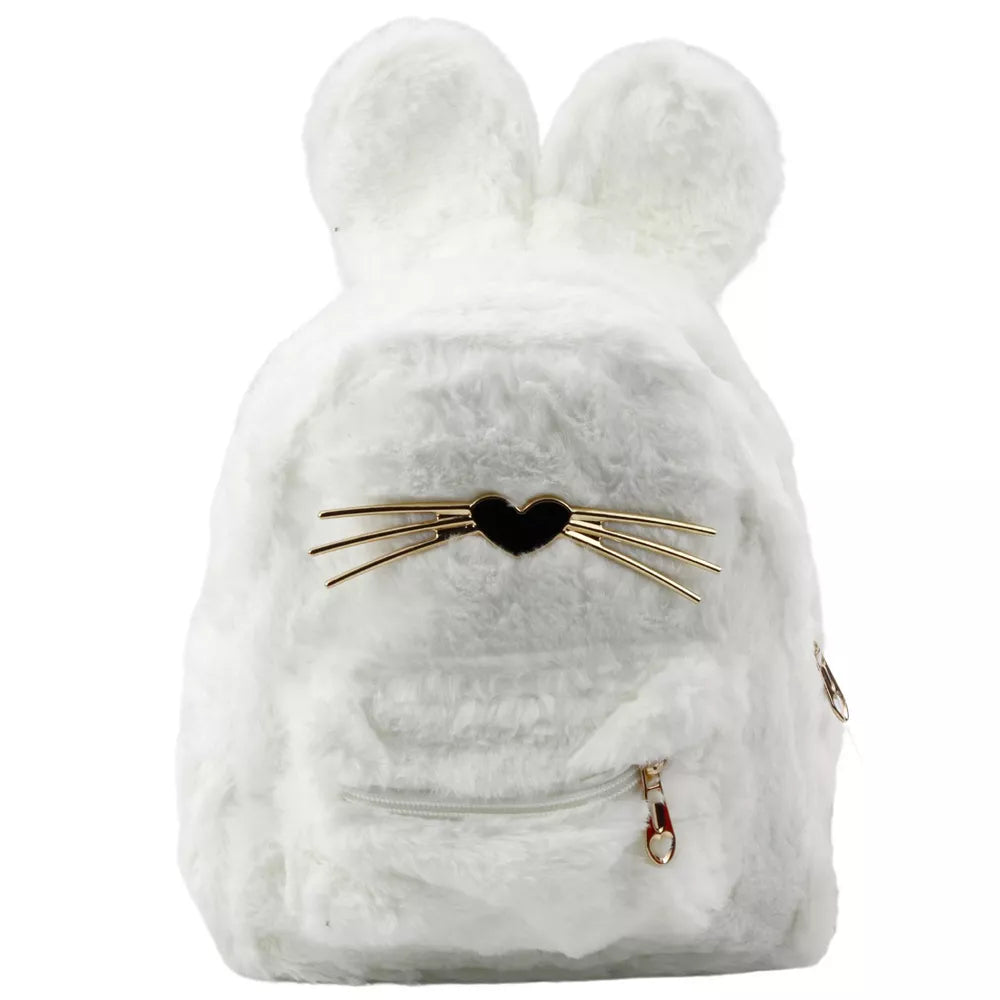 Balta vaikiška kuprinė su triušio motyvu yra unikalus pasiūlymas patiems mažiausiems, kurie mėgsta minkštus, jaukius ir linksmus aksesuarus. Kuprinė pagaminta iš minkštos, kailinės sintetinės medžiagos, kuri yra maloni liesti ir saugi vaikams. Ryškiausias jos elementas – išsikišusios triušio ausys, taip pat auksinė širdelės formos nosis ir dekoratyviniai ūsai, kurie suteikia visam daiktui pasakišką charakterį.