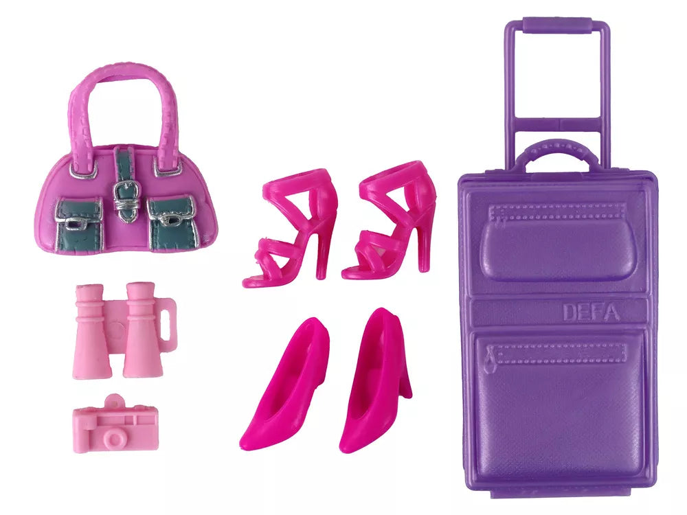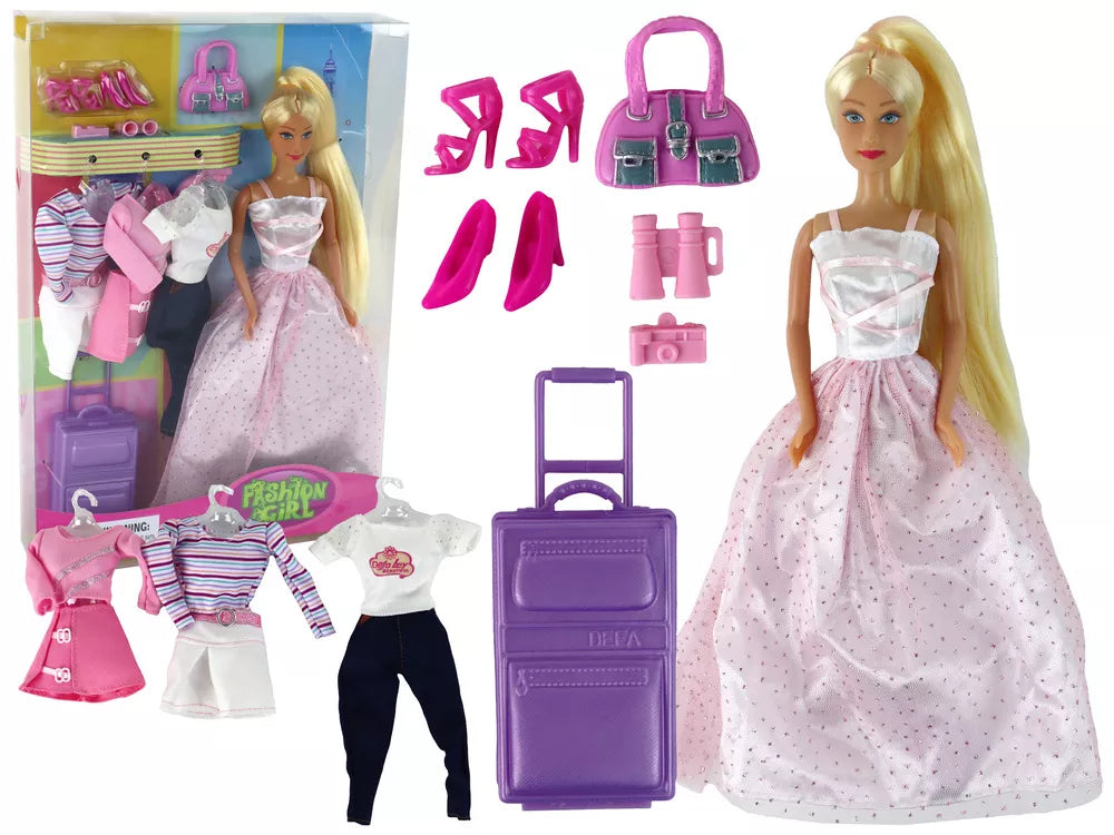Tai unikali lėlė, puikiai tinkanti kūrybiniam žaidimui keliaujant. Jos ilgus, šviesius plaukus galima šukuoti ir eksperimentuoti su skirtingomis šukuosenomis, o tai lavina vaikų kūrybiškumą. Lėlė apsirengusi elegantiška suknele, dekoruota tiuliu ir blizgučiais, o jos mėlynos akys suteikia žavesio. Rinkinyje taip pat yra dvi poros rožinių aukštakulnių batelių, violetinis atidaromas lagaminas (8 cm x 5 cm x 3 cm) su ištraukiama rankena, rožinė rankinė, fotoaparatas ir žiūronai, leidžiantys patirti įvairių nuotykių ir vaidmenų. Be to, rinkinyje yra trys skirtingi drabužių komplektai, įskaitant sijoną su blizgučių diržu ir dryžuotą palaidinę ilgomis rankovėmis, rožinį sijoną su rožine palaidine ir tamsias kelnes su baltais marškiniais su nėriniais, trumpomis rankovėmis, dekoruotomis blizgučiais.