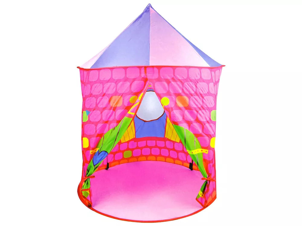 Ši graži rožinė palapinė su išskirtiniais pilies elementais taps mėgstamiausia žaidimų erdve namuose ir sode. Dėl savo stabilaus rėmo ir neperšlampamo poliesterio audinio ji yra saugi ir patogi naudoti. Palapinės įėjimas gali būti pririštas šonuose, kad būtų lengva įeiti ir išeiti, o apvali bazė užtikrina, kad nebūtų aštrių kraštų.