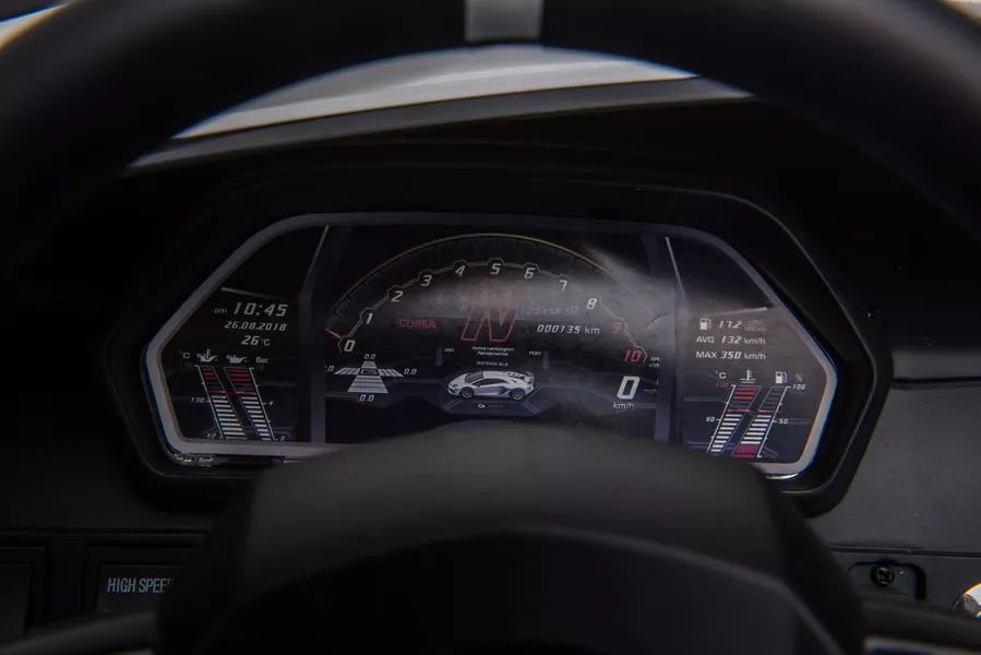 Automobilio vidus taip pat įkvėptas pilno dydžio transporto priemonės vairuotojams, mėgstantiems greitį. Tai sportinio stiliaus, minimalizmo ir funkcionalumo derinys. Juoda sėdynė su daugybe detalių pagaminta iš minkštos ekoodos, kuri labai padidina žaidimo komfortą, o pasukamas vairas su garso signalu savo dydžiu ir svoriu pritaikytas kelerių metų vaikų rankoms, kad jiems būtų lengva manevruoti ir išvengti kliūčių. Ant tamsaus prietaisų skydelio yra šviečianti spidometro ir tachometro imitacija. Kairėje prietaisų skydelio pusėje yra muzikos skydelis - jo korpuse yra mygtukai, leidžiantys keisti dainą arba garso lygį, taip pat USB prievadas, MP3