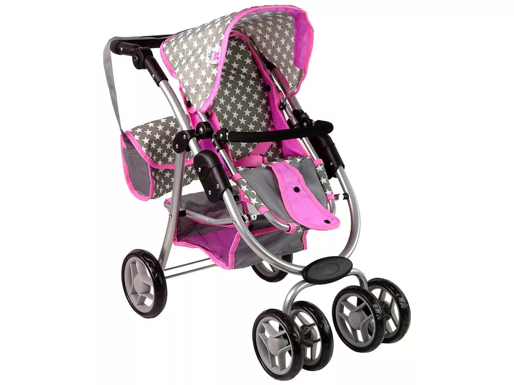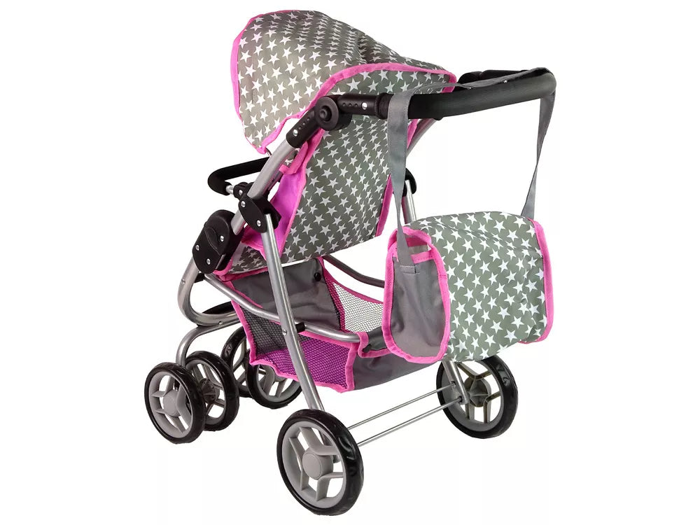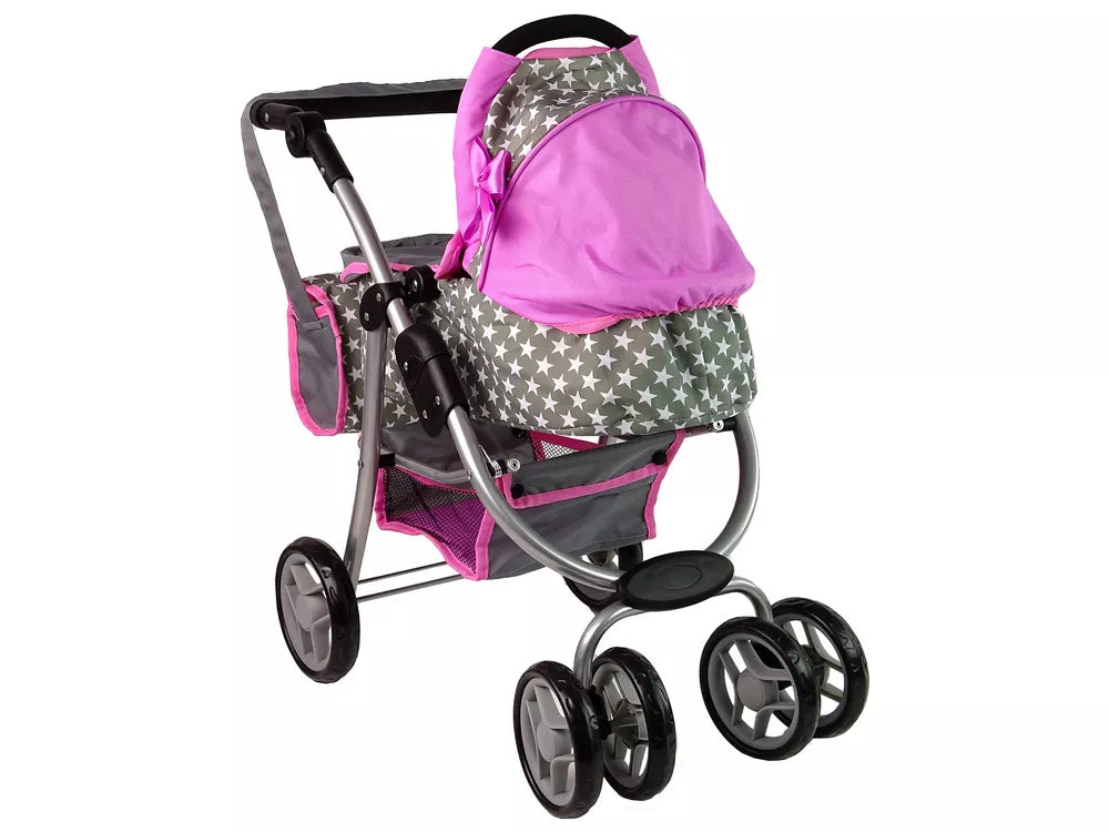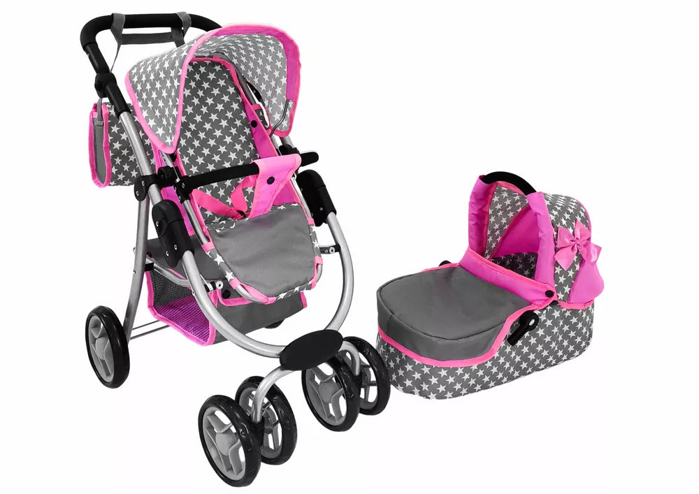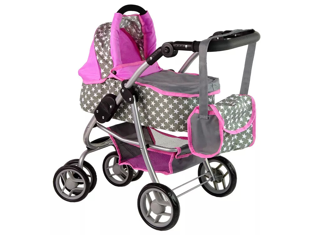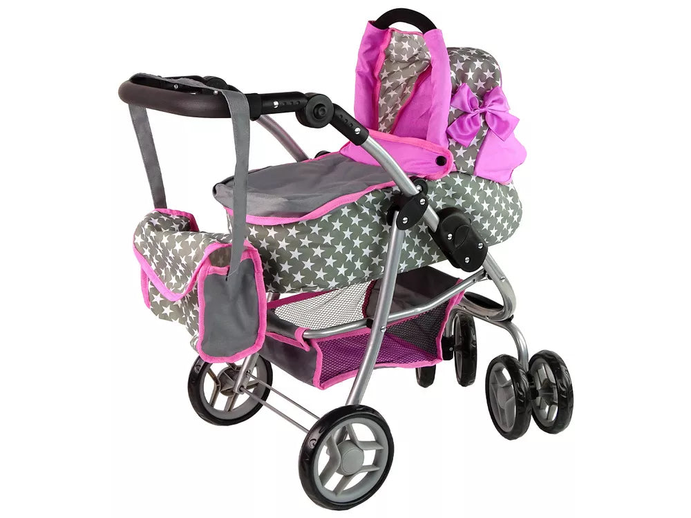 Lėlės vežimėlis 2-in-1 nešiojamas krepšys rožinės žvaigždėsLėlės vežimėlis yra idealus žaislas mergaitėms, norinčioms rūpintis savo lėlėmis. Madinga spalva ir grafika... Skaityti daugiau