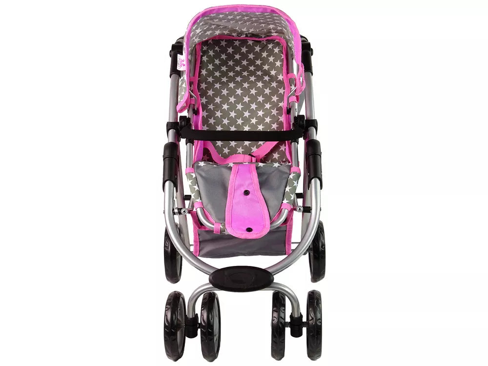Vaikiškas lėlių vežimėlis 2-in-1 nešiojama tašė rožinės žvaigždės