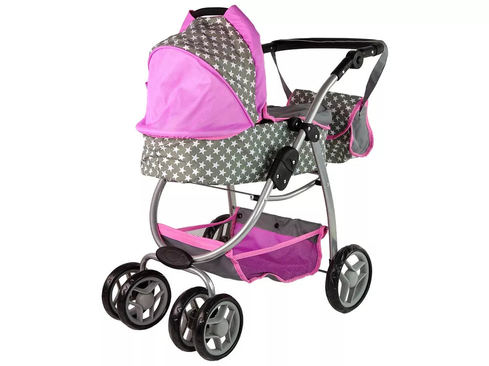 Vaikiškas lėlių vežimėlis 2-in-1 nešiojama tašė rožinės žvaigždės