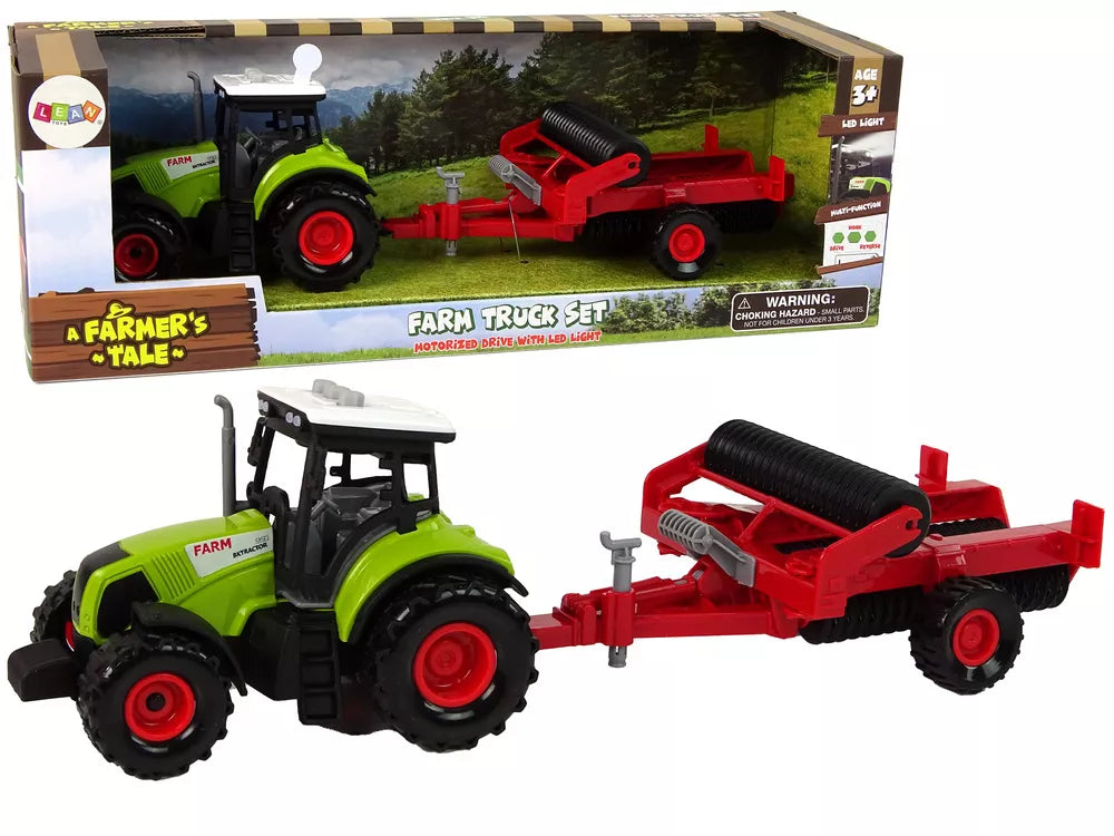 Modelis sukurtas klasikine žalia spalva, kuri primena tradicines žemės ūkio transporto priemones. Dideli galiniai ratai leidžia traktoriui sklandžiai judėti, o rankinis valdymas leidžia važiuoti pirmyn ir atgal. Papildoma atrakcija – garso efektai, kuriuos galima įjungti trimis mygtukais, esančiais transporto priemonės stoge. Traktorius skleidžia tikroviškus garsus: važiavimo atbuline eiga, signalo ir užvedimo.