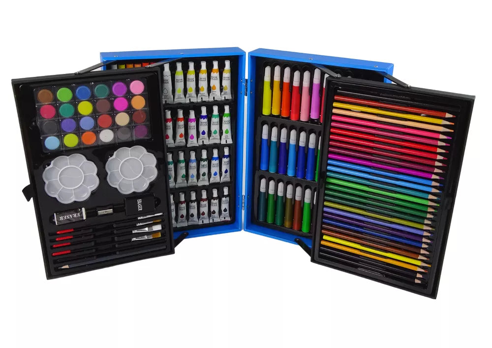 Yra 145 elementai, įskaitant kreideles, flomasterius, dažus ir aliejines pasteles – idealiai tinka piešimui, tapybai ir eskizams.