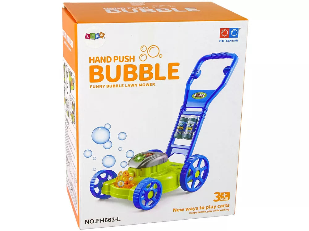 Šis vežimėlio formos burbulų generatorius turi net 8 tinklelius, pro kuriuos nenutrūkstamai dideliu greičiu skrieja mažyčiai burbuliukai. Įjungus pirmiausia bus girdimas šaudymo ir pjovimo garsas, o vėliau linksmybes papildys linksma muzika. Du muilo skysčio buteliukai ilgam užtikrins pakankamą kiekį.