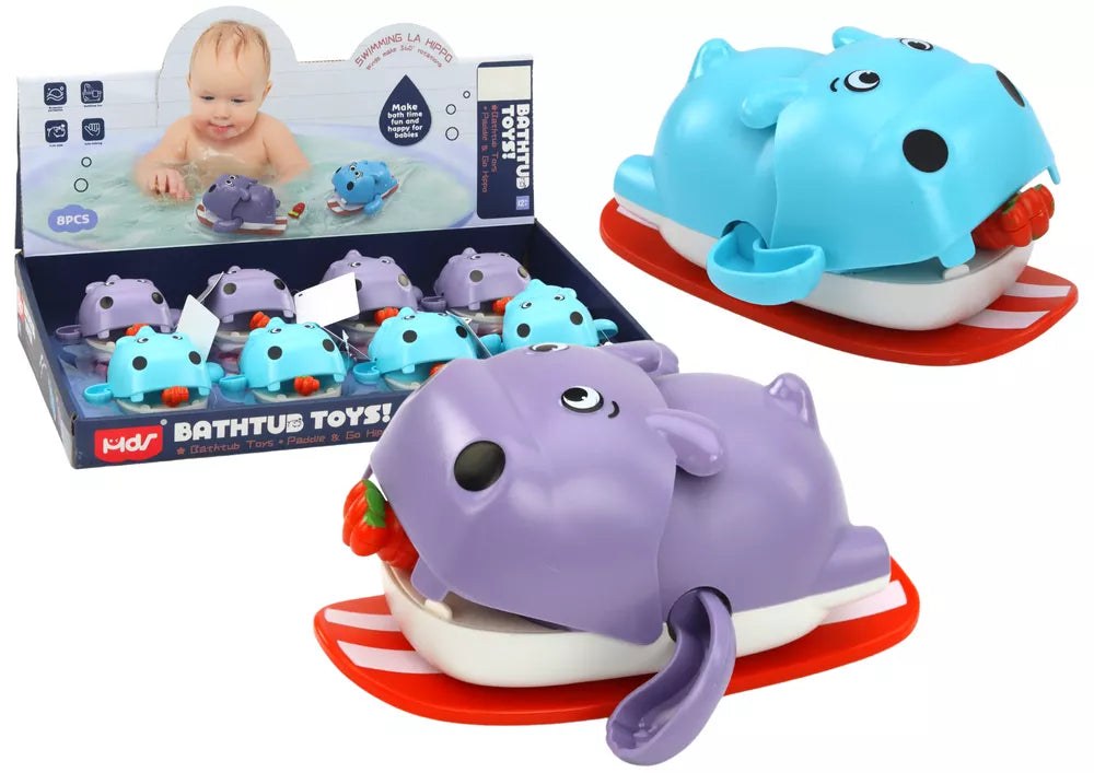 Užsukamas vonios žaislas Plaukiojantis hipopotamas ant lentos