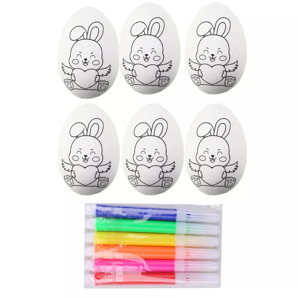 ⭐ POLISTIROLO KIAUŠINIAI DAŽYMUI – 6 VNT. SU MARKERIAIS ⭐