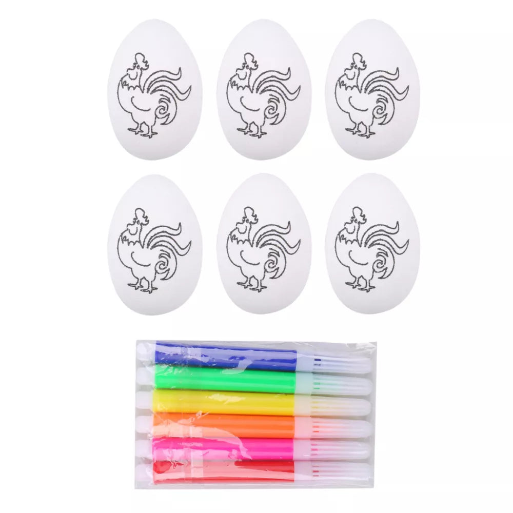 ⭐ PUTPLASČIO KIAUŠINIAI DAŽYMUI 6 VNT. SU FLOMASTERIAIS ⭐