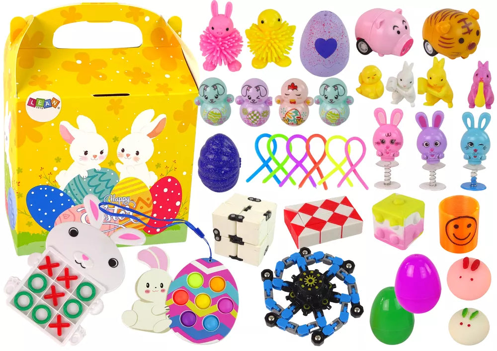 Velykinis žaislų rinkinys! Padarykite dovaną savo vaikui ir padovanokite jam jutiminių žaislų rinkinį, kuris taip pat žinomas kaip antistresiniai žaislai. Velykinis smulkių žaislų rinkinys gali lavinti vaikų akių-rankų koordinaciją, rankų funkcijas, kūrybiškumą ir loginį mąstymą. Tai leis sutelkti vaiko dėmesį į veiklą.