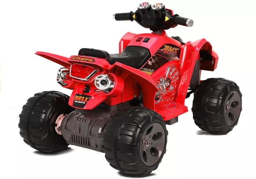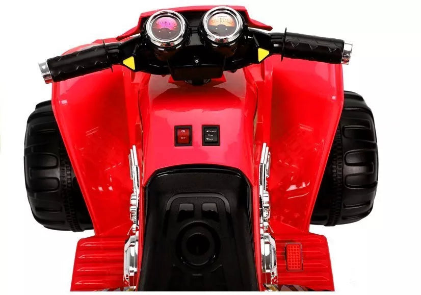 Naujas raudonas keturratis varomas 12 V 7 Ah akumuliatoriumi ir 2 x 45 W varikliu. Džipas yra modernaus ir laukinio dizaino. Jis turi dvi pavaras atgal ir į priekį, taip pat automatinį stabdį atleidus akceleratoriaus pedalą.