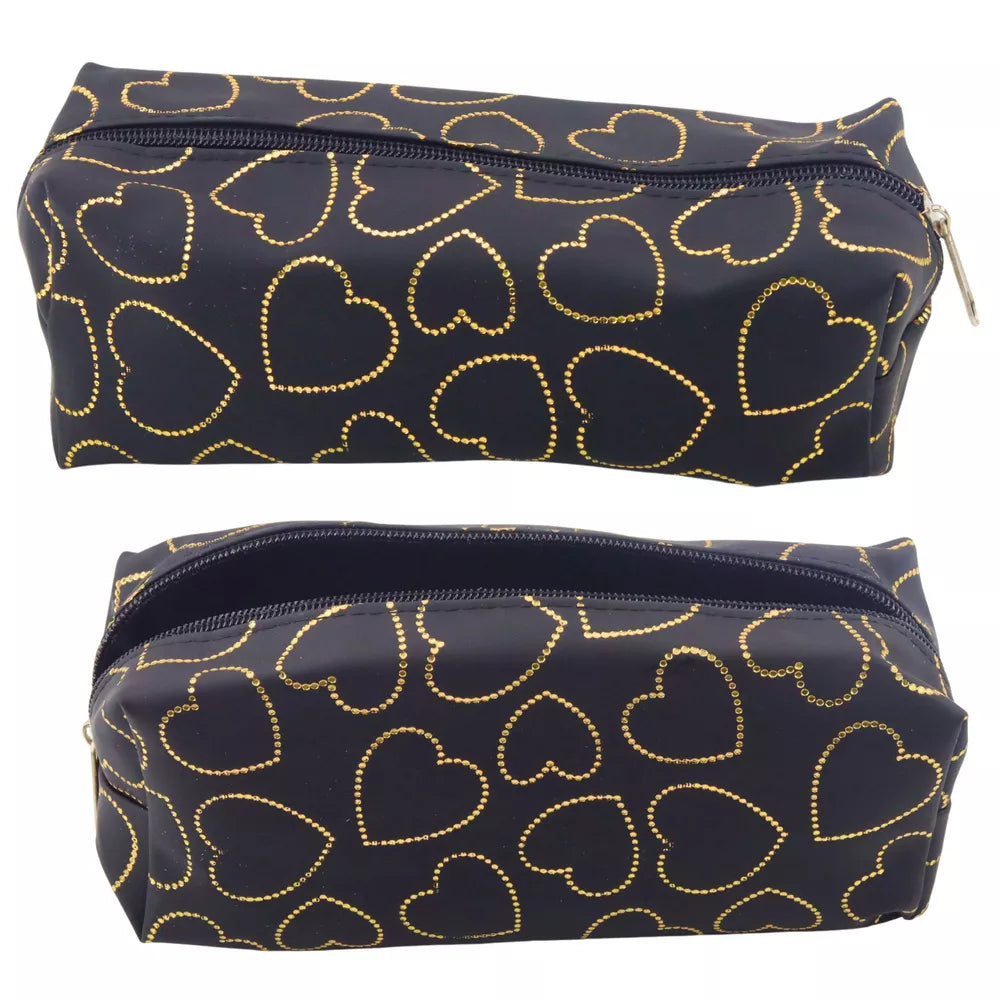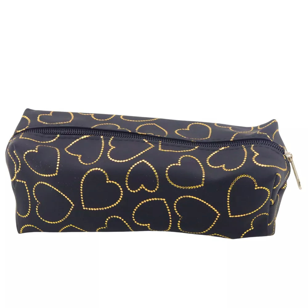 Vienos kupeės mokyklinė/biuro pieštukinė su auksinėmis širdelėmis, juoda, 20x8 cm
