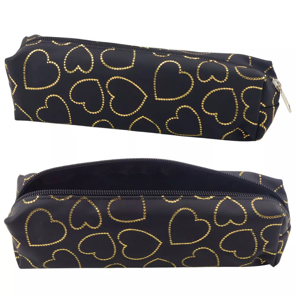 Vienos skyriaus pieštukinė mokyklai ir biurui "Auksinės širdelės", juoda, 20x6.5 cm
