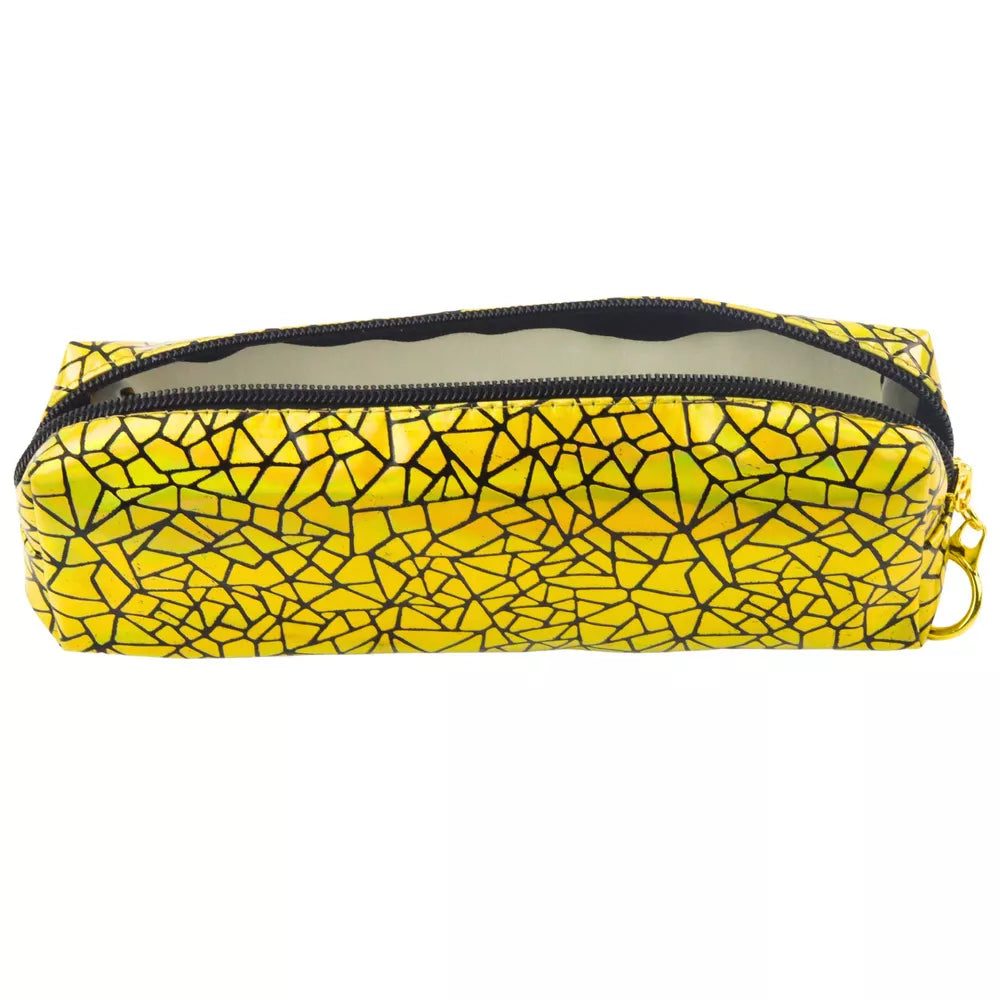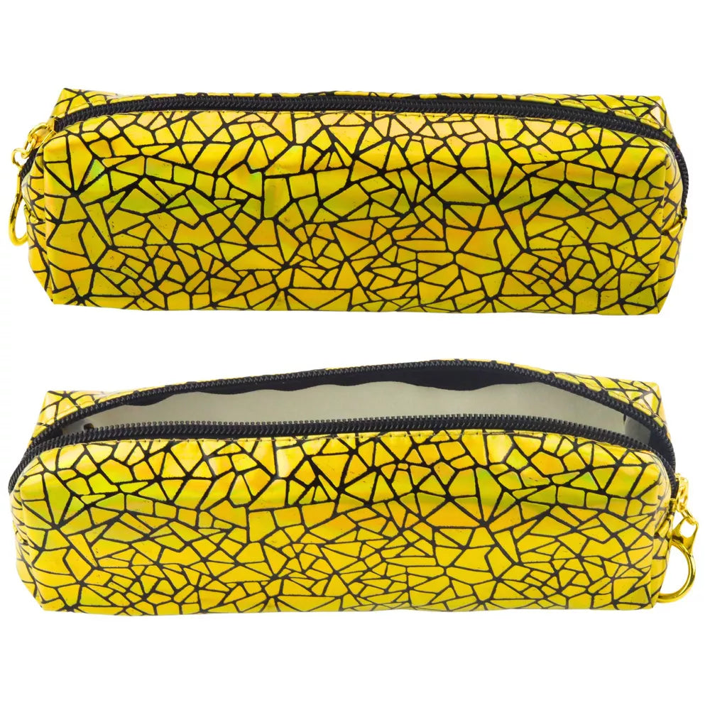 Vienos talpos mokyklinė pieštukinė su holografiniu raštu, auksinė, 20x6.5 cm