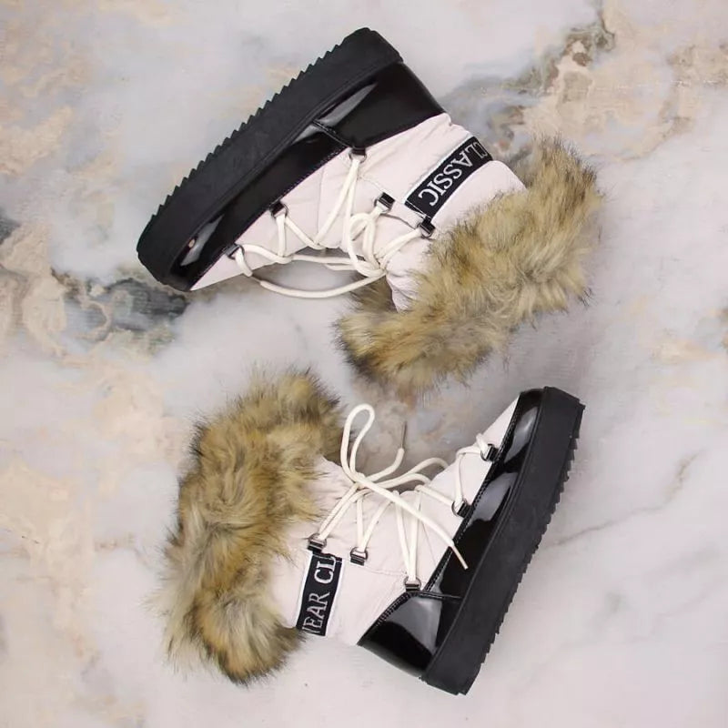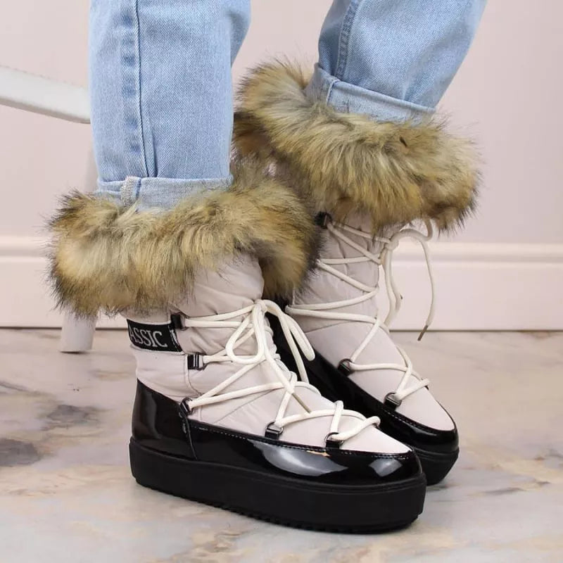 Vinceza W JAN262 suvarstomi platforminiai sniego batai su kailiu, smėlio spalvos