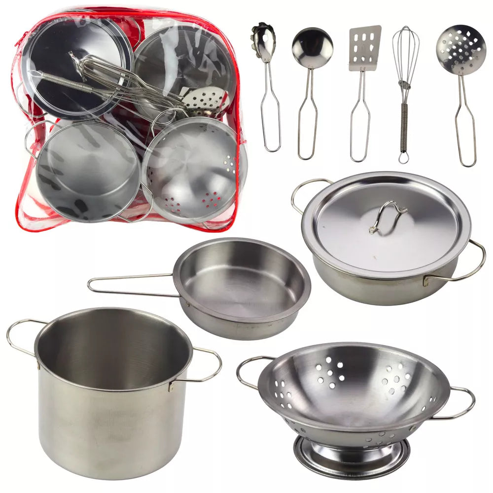 Ši metalinių virtuvės reikmenų kolekcija vaikams yra puikus pasirinkimas jauniesiems virėjams, norintiems mėgdžioti suaugusiuosius ir lavinti kulinarinius įgūdžius linksmai leidžiant laiką. Visi indai pagaminti iš aukštos kokybės metalo, tiksliai atkartojantys tikrus virtuvės reikmenis – tiek išvaizda, tiek savitu garsu.