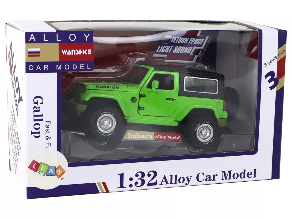 Mūsų internetinėje parduotuvėje pristatome žalią visureigį, kurio įspūdingi matmenys yra 14 cm x 8 cm x 6 cm. Pagamintas iš metalo, tai tvirtos konstrukcijos transporto priemonė, užtikrinanti tvirtumą ir ilgaamžiškumą, puikiai tinkanti bet kokiems nuotykiams bekelėje.