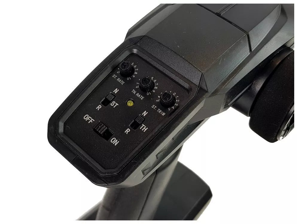 RC automobilis leidžia valdyti droselį ir greitį. Dvi rankenėlės leidžia nustatyti vairo kampą. Greičio jungiklis, nustatytas pagal laikrodžio rodyklę, padidina važiavimo greitį. Greičio jungiklis, nustatytas prieš laikrodžio rodyklę, sumažina važiavimo greitį. Puikus bruožas yra alyva užpildyti metaliniai amortizatoriai ir didelio stiprumo padangos.