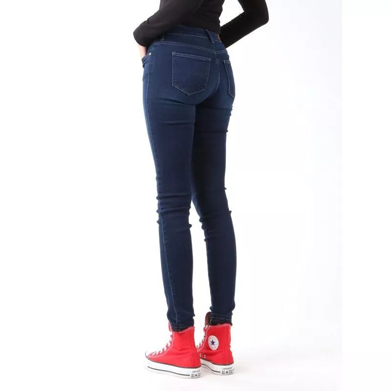 Savybės: Moteriškos džinsinės kelnės su siauromis klešnemis. Mažos kišenės priekyje ir gale. Odinis įdėklas su „Wrangler“ logotipu ant galinės juostos.... Skaityti daugiau