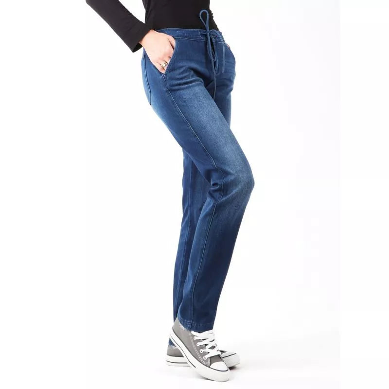 Savybės: Moteriškos džinsinės kelnės su siaurėjančiomis klešnemis. Mažos kišenės priekyje ir gale. Tunelinis juosmuo su raišteliu, kad būtų galima surišti... Skaityti daugiau