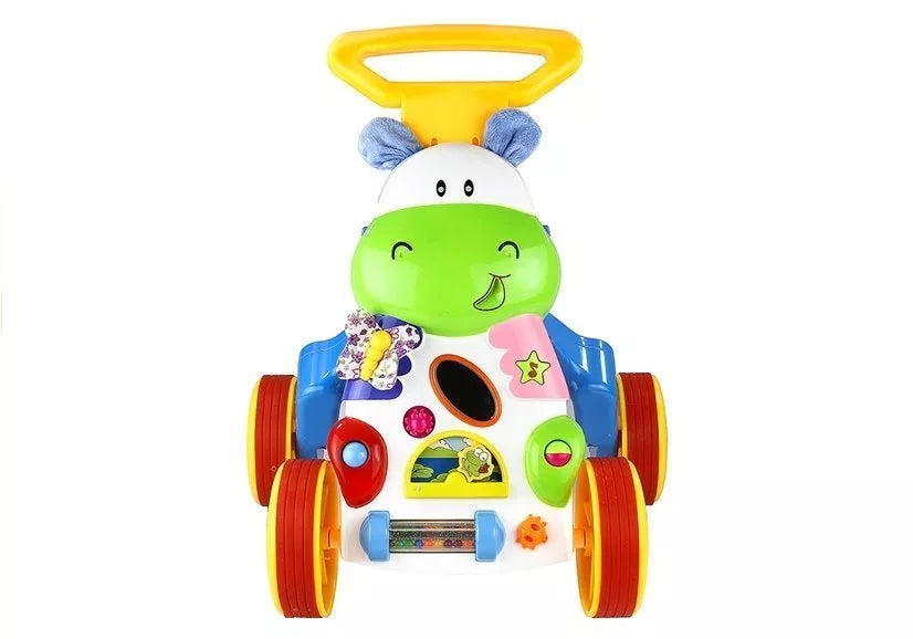 Šis žaislas padeda vaikui žengti pirmuosius žingsnius. Ryškios spalvos ir mielas dizainas tikrai patrauks vaiko dėmesį.Žaislas veikia su baterijomis ir skleidžia garso efektus.