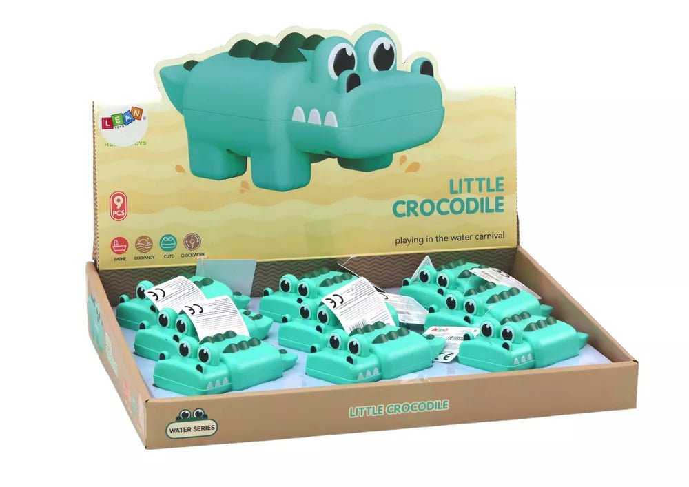 Pagamintas iš šviesiai žalio plastiko, krokodilas traukia dėmesį savo išvaizda ir interaktyvumu. Užsukus mechanizmą, krokodilas pradeda vizginti uodegą ir slysti per vandenį, sukeldamas vaikams entuziazmą ir šypsenas.