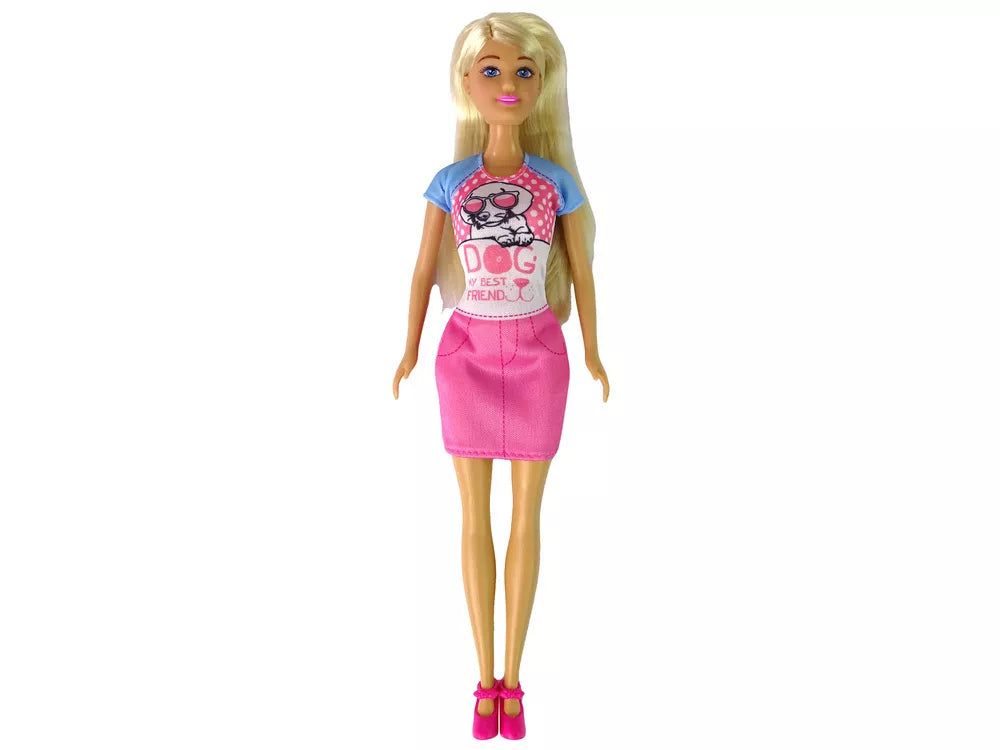 Lėlė apsirengusi rožine ir mėlyna suknele bei rožiniais bateliais su kulniukais. Ji turi ilgus, blizgančius šviesius plaukus ir dideles mėlynas akis. Dėl judinamų galūnių galima imituoti realius lėlės judesius. Rinkinyje taip pat yra šuo su judinama uodega, ausimis ir snukiu. Dėl šių savybių ir rožinio konteinerio, esančio gyvūno pilve, galima gyvūną maitinti rinkinyje esančiu maistu, o vėliau jį išimti tolimesniam žaidimui. Rinkinyje taip pat yra pavadėlis šuniui vedžioti.