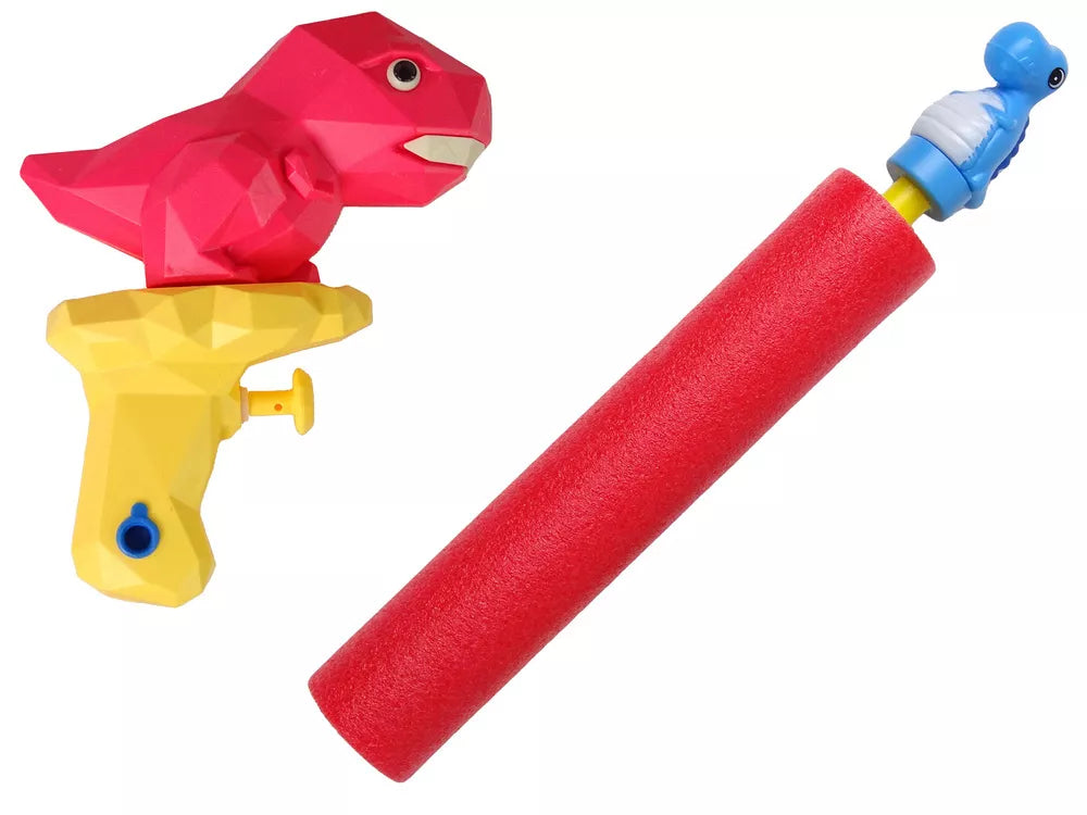 Šalia akinių rinkinyje taip pat yra vandens šautuvas – pompa su maža dinozauro figūrėle ir vandens šautuvas dinozauro formos, kurie paįvairina linksmybes baseine.